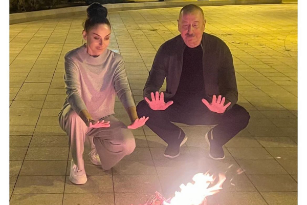 Prezident Od çərşənbəsində xanımı ilə tonqal ətrafında - FOTO/VİDEO