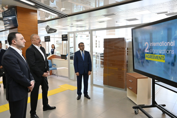 İlham Əliyev və Qaribaşvili Qəbələ “ASAN xidmət“ mərkəzində -