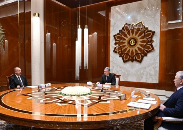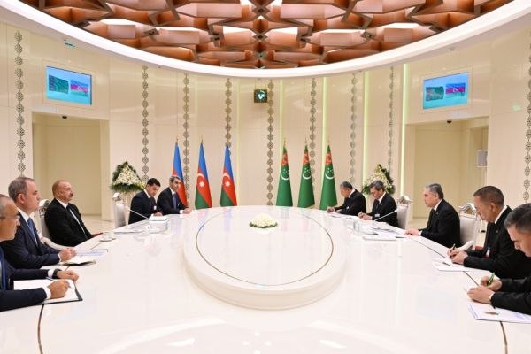 İlham Əliyevin Berdiməhəmmədovla geniş tərkibdə görüşü oldu