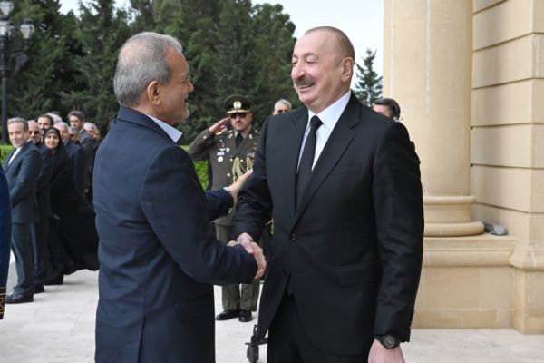 İlham Əliyev Pezeşkianı qarşıladı -