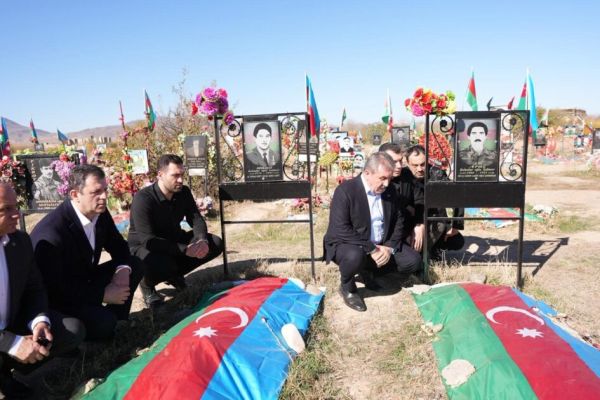 Türkiyəli partiya sədri Ağdam Şəhidlər Xiyabınını ziyarət etdi-