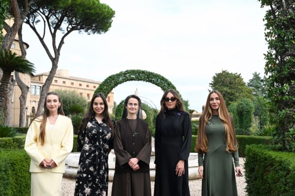 Birinci xanım Müqəddəs Pyotr Bazilikasındakı bərpa işləri ilə tanış oldu -