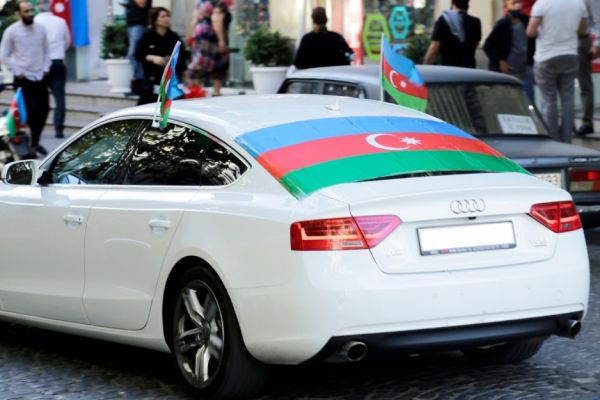 Avtomobilinin şüşəsinə bayraq vuranların