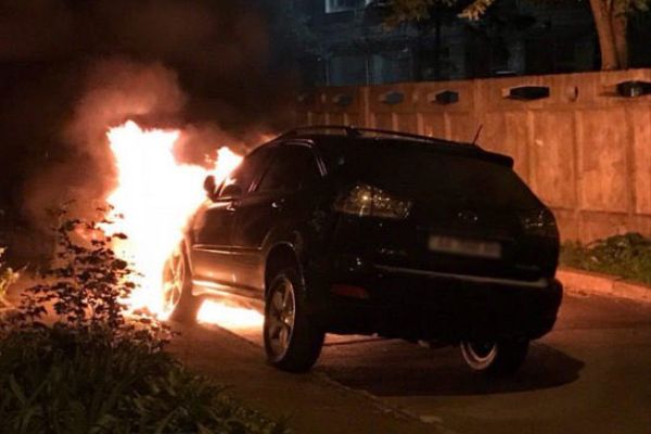 Küçədə “Lexus” alovlandı