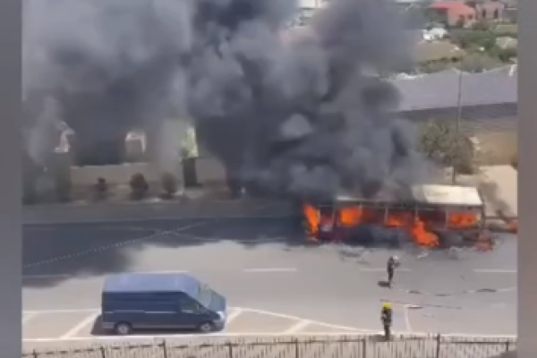 Bakıda avtobus yandı -
