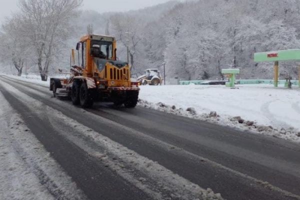 Güclü qar bu yolda hərəkəti çətinləşdirdi