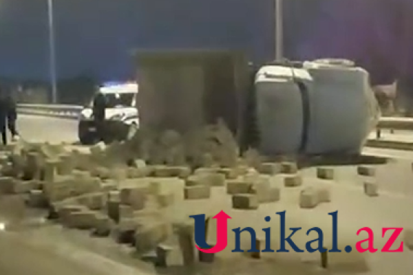 Paytaxtda daşla dolu yük maşını aşdı - VİDEO