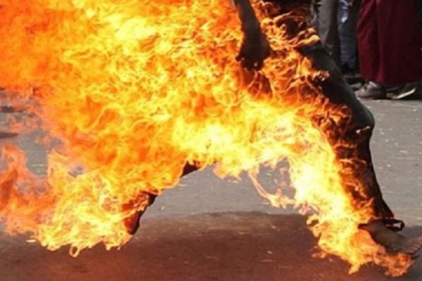 Kişi mübahisə etdiyi qadını yandırdı