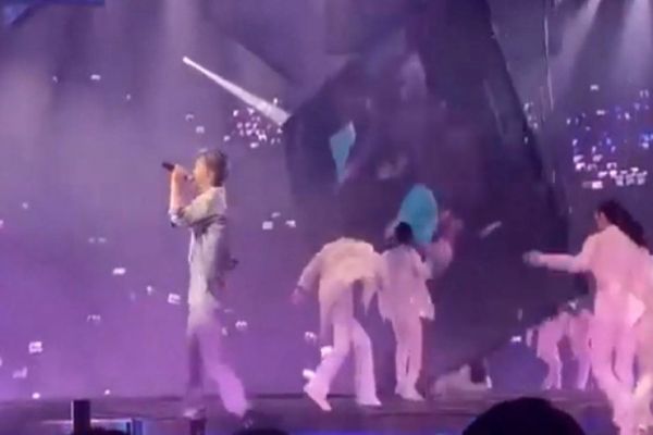 Səhnədəki ekran rəqqasın üzərinə düşdü (VİDEO)