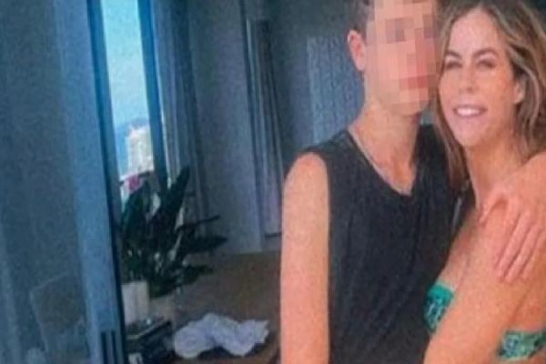 Oğlunun yanında çimərlik geyimi ilə şəkil çəkdirən