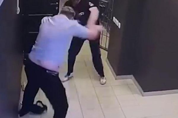 Müttəhimin nəzarətçilərə hücum anı kamerada - VİDEO