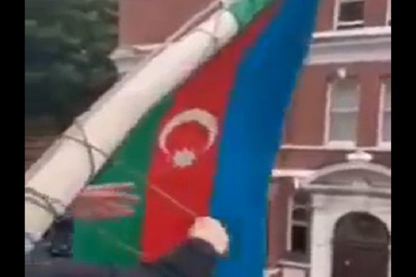 Londonda səfirliyin binasında yenidən bayrağımız dalğalanır - Video