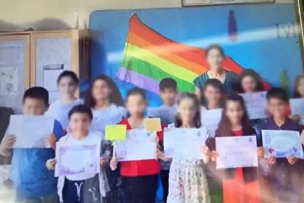 BİABIRÇILIQ: Müəllim ibtidai sinif şagirdlərinə LGBT bayrağı önündə FOTO çəkdirdi