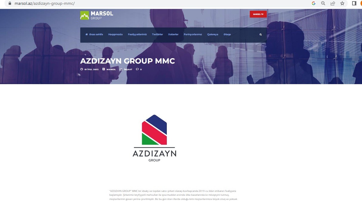 Onu da bildirək ki, Marsol MMC-nin tərəfdaşlarındandır. “AZDIZAYN GROUP” MMC 2024-2025-ci il üzrə Marsol Group partnyorluğuna qoşulub.