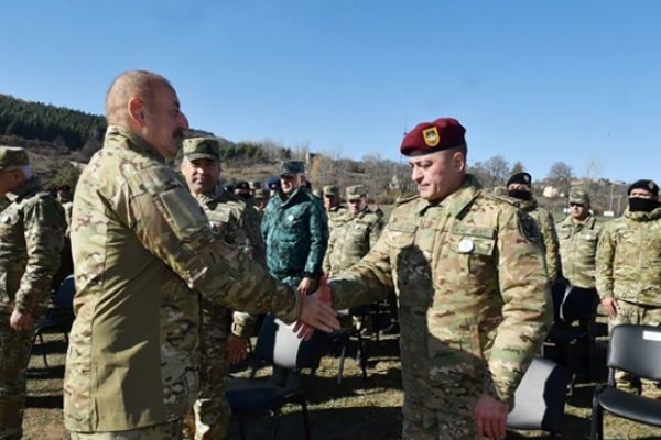 İlham Əliyevin Şuşada generallarla görüşü