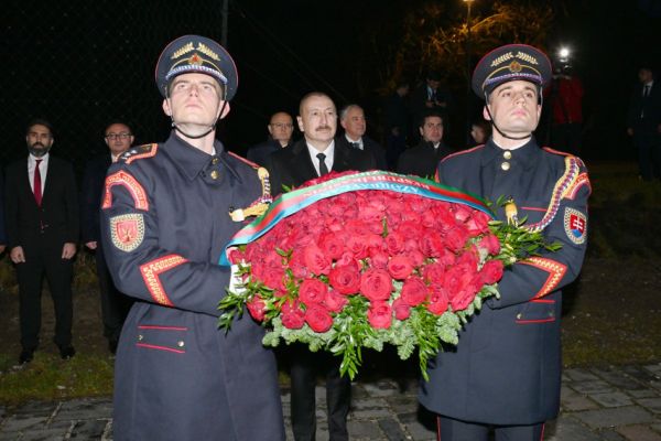 Prezidentlər Bratislavada “Azadlıq Qapısı” abidəsini ziyarət etdilər - FOTOLAR