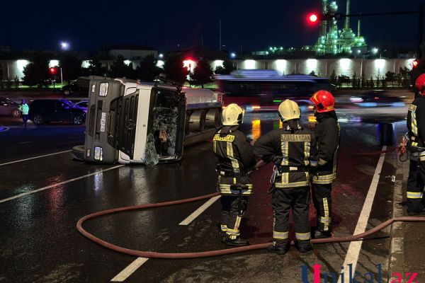 Bakıda yanacaq daşıyan tanker aşdı - FOTOLAR