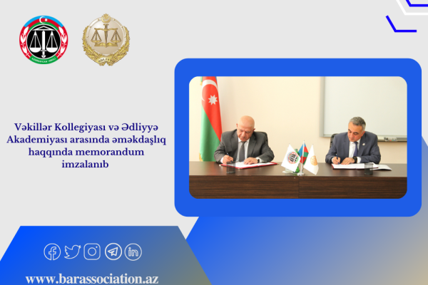 Vəkillər Kollegiyası və Ədliyyə Akademiyası arasında əməkdaşlıq haqqında memorandum imzalanıb