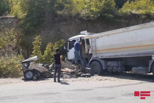 Azərbaycanda yük maşını minik avtomobilinin üstündən keçdi