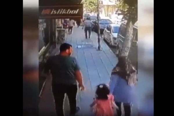 Ata və qız səkidə gedərkən başlarına beton parçası düşdü