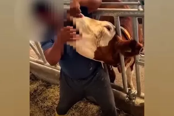 Qurbanlıq heyvana içki içirtdi (VIDEO)