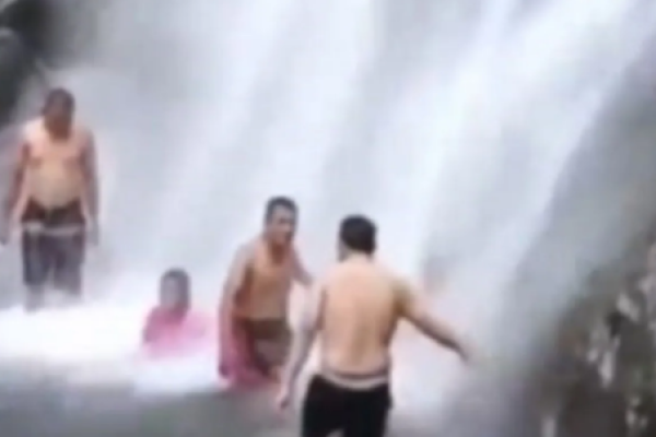 Sürüşmə nəticəsində ağac şəlalədə çimən ailənin üzərinə düşdü: