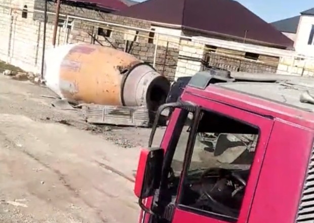 Beton qarışdıran yük maşını qəza törətdi