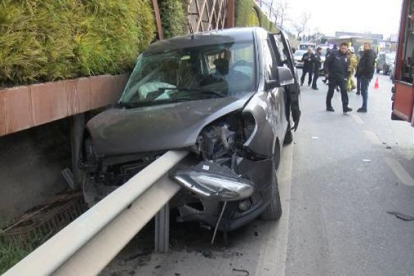 Avtomobil dəmir maneəyə çırpıldı... (VİDEO)